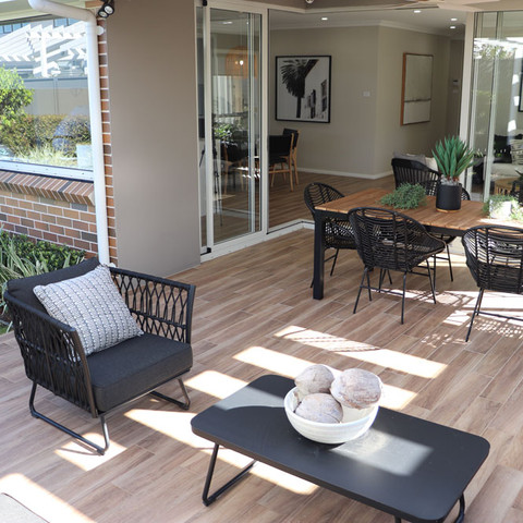 So, let's have a walk through to see why this particular home is so special and if its characteristics can help inspire your own interior selections. Starting from its very functional floor-plan, this home offers four bedrooms, two separate living areas, and a large alfresco, so although it’s a single storey it packs a lot in. It’s a common feature to enjoy a great flow from the open plan kitchen/dining/living area out onto the alfresco, but for this particular home we opted for two sets of large sliding glass doors which open up to merge the two areas into one unified and very large space, perfect for entertaining.